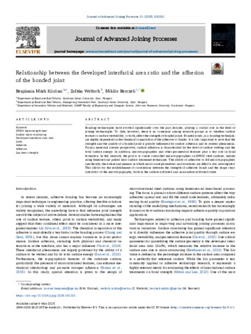 Körömi, Benjámin and Weltsch, Zoltán and Berczeli, Miklós (2025) Relationship between the developed interfacial area ratio and the adhesion of the bonded joint. JOURNAL OF ADVANCED JOINING PROCESSES, 11. No.100310. ISSN 2666-3309
