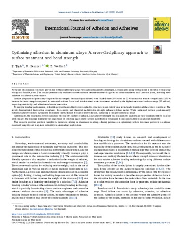 Tajti, Ferenc and Berczeli, Miklós and Weltsch, Zoltán (2025) Optimizing adhesion in aluminum alloys : a cross-disciplinary approach to surface treatment and bond strength. INTERNATIONAL JOURNAL OF ADHESION AND ADHESIVES, 142. No. 104068. ISSN 0143-7496