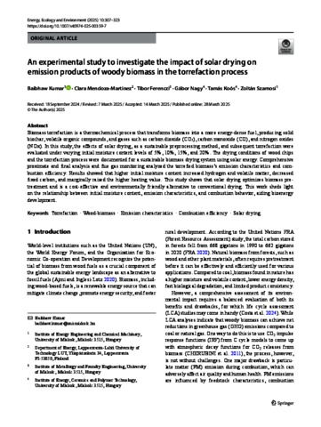 Kumar, Baibhaw and Martinez, Clara Mendoza and Ferenczi, Tibor and Nagy, Gábor and Koós, Tamás and Szamosi, Zoltán (2025) An experimental study to investigate the impact of solar drying on emission products of woody biomass in the torrefaction process. ENERGY, ECOLOGY AND ENVIRONMENT, 10. pp. 307-323. ISSN 2363-7692