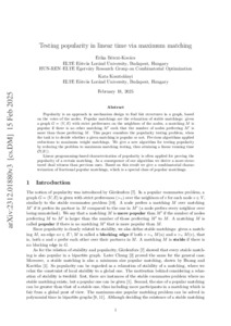 Bérczi-Kovács, Erika and Kosztolányi, Kata (2025) Testing popularity in linear time via maximum matching. DISCRETE APPLIED MATHEMATICS, 366. pp. 152-160. ISSN 0166-218X
