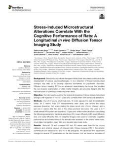 Nagy, Szilvia Anett and Vranesics, Anett and Varga, Zsófia and Csabai, Dávid and Bruszt, Nóra and Bali, Zsolt Kristóf and Perlaki, Gábor and Hernádi, István and Berente, Zoltán and Miseta, Attila and Dóczi, Tamás and Czéh, Boldizsár (2020) Stress-Induced Microstructural Alterations Correlate With the Cognitive Performance of Rats: A Longitudinal in vivo Diffusion Tensor Imaging Study. FRONTIERS IN NEUROSCIENCE, 14. No. 474.
