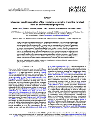 Kiss, Tibor and Horváth d., Ádám and Cseh, András and Berki, Zita and Balla, Krisztina and Karsai, Ildikó (2025) Molecular genetic regulation of the vegetative–generative transition in wheat from an environmental perspective. ANNALS OF BOTANY, 135 (4). pp. 605-628. ISSN 0305-7364