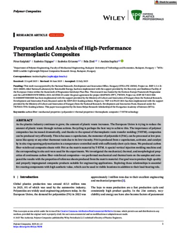 Széplaki, Péter and Hajagos, Szabolcs and Krizsma, Szabolcs and Zink, Béla and Suplicz, András (2025) Preparation and Analysis of High‐Performance Thermoplastic Composites. POLYMER COMPOSITES. pp. 1-12. ISSN 0272-8397 (In Press)