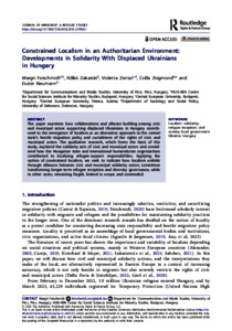Feischmidt, Margit and Zakariás, Ildikó and Zentai, Violetta and Zsigmond, Csilla and Neumann, Eszter (2025) Constrained Localism in an Authoritarian Environment: Developments in Solidarity With Displaced Ukrainians in Hungary. JOURNAL OF IMMIGRANT & REFUGEE STUDIES. (In Press)