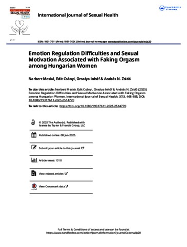 Meskó, Norbert and Csányi, Edit and Inhóf, Orsolya and Zsidó, András N. (2025) Emotion Regulation Difficulties and Sexual Motivation Associated with Faking Orgasm among Hungarian Women. INTERNATIONAL JOURNAL OF SEXUAL HEALTH, 37 (3). pp. 468-485. ISSN Print 1931-7611 Online 1931-762X