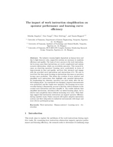 Gugolya, Mónika and Varga, Vera and Medvegy, Tibor and Ruppert, Tamás (2025) The Impact of Work Instruction Simplification on Operator Performance and Learning Curve Efficiency. In: Advances in Production Management Systems. Cyber-Physical-Human Production Systems: Human-AI Collaboration and Beyond, 2025 August 31 - September 4, Kamakura, Japan.