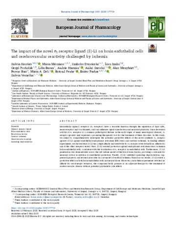 Kecskés, Szilvia and Mészáros, Mária and Dvorácskó, Szabolcs and Szabó, Írisz and Porkoláb, Gergő and Barna, Lilla and Harazin, András and Szecskó, Anikó and Menyhárt, Ákos and Bari, Ferenc and Deli, Mária Anna and Penke, Botond and Farkas, Eszter and Veszelka, Szilvia (2025) The impact of the novel sigma1 receptor ligand (S)-L1 on brain endothelial cells and cerebrovascular reactivity challenged by ischemia. EUROPEAN JOURNAL OF PHARMACOLOGY, 1000. No.-177724. ISSN 0014-2999