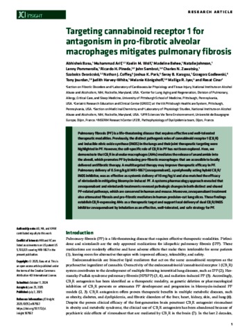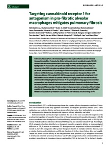 Basu, Abhishek and Arif, Muhammad and Wolf, Kaelin M. and Behee, Madeline and Johnson, Natalie and Pommerolle, Lenny and Pineda, Ricardo H. and Sembrat, John and Zawatsky, Charles N. and Dvorácskó, Szabolcs and Coffey, Nathan J. and Park, Joshua K. and Karagoz, Seray B. and Godlewski, Grzegorz and Jourdan, Tony and Harvey-White, Judith and Königshoff, Melanie and Iyer, Malliga R. and Cinar, Resat (2025) Targeting cannabinoid receptor 1 for antagonism in pro-fibrotic alveolar macrophages mitigates pulmonary fibrosis. JCI INSIGHT, 10 (15). ISSN 2379-3708