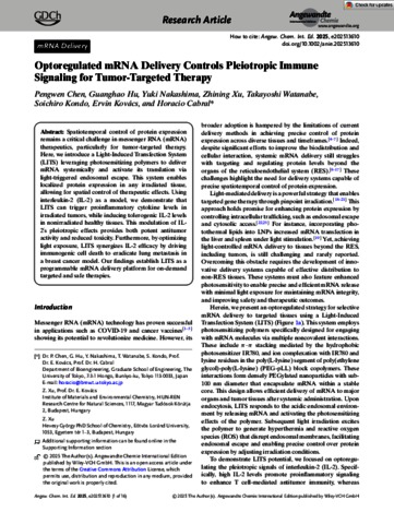 Chen, Pengwen and Hu, Guanghao and Nakashima, Yuki and Xu, Zhining and Watanabe, Takayoshi and Kondo, Soichiro and Kovács, Ervin and Cabral, Horacio (2025) Optoregulated mRNA Delivery Controls Pleiotropic Immune Signaling for Tumor‐Targeted Therapy. ANGEWANDTE CHEMIE-INTERNATIONAL EDITION. ISSN 1433-7851 (In Press)