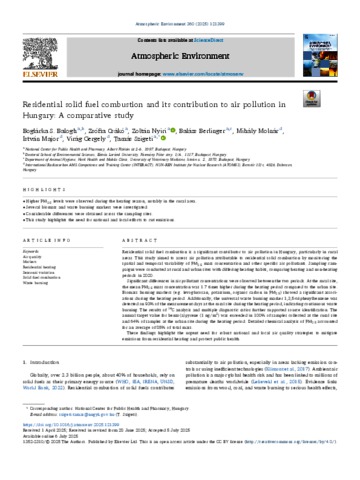 Balogh, Boglárka Sára and Csákó, Zsofia and Nyiri, Zoltan and Berlinger, Balazs and Molnár, Mihály and Major, István and Gergely, Virág and Szigeti, Tamás (2025) Residential solid fuel combustion and its contribution to air pollution in Hungary: A comparative study. ATMOSPHERIC ENVIRONMENT, 360. No. 121399. ISSN 1352-2310