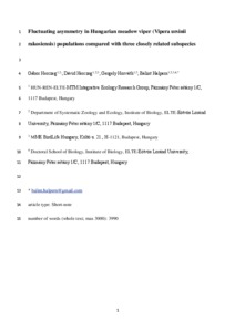 Herczeg, Gábor and Herczeg, Dávid and Horváth, Gergely and Halpern, Bálint (2025) Fluctuating asymmetry in Hungarian meadow viper (Vipera ursinii rakosiensis) populations compared with three closely related subspecies. AMPHIBIA-REPTILIA. ISSN 0173-5373 (In Press)