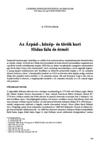 Szekszárd északnyugati határában az utóbbi évek szisztematikus terepbejárásainak köszönhetően az Árpád-, közép- és török kori Hidas falu kiterjedését és korát sikerült pontosabban meghatározni a gyűjtött érmék szóródásának alapján. 2022-ben az akkori terepbejárási anyagokra támaszkodva egy rövid cikket írtam a falu történetéről,1 amit a jelenlegi tanulmányban, a jóval nagyobb régészeti anyag alapján módosítanom kell. Korábban az előkerült pénzérmék alapján a 15–16. századra lehetett keltezni a falut,2 a benépesülés kezdetét az 1313-as okleveles adat alapján pedig, melyben Hidas falu papjáról tettek említést,3 a 14. századra tettem. Ma már bizonyos, hogy a falu már az Árpád-korban is létezett, a megtelepedés kezdetét a 12. századra tehetjük, és a 16. század végén vált pusztává. | My study entitled Hidas a 14–16. században (Hidas between the fourteenth and sixteenth centuries) was published in 2022. It needed to be complemented and rewritten due to the discovery of new artefacts brought to the museum since then. The existence of the village was, based on the data available back then, dated to the late medieval period and the sixteenth century. As a result of several fieldwalking surveys, the number of coins and other finds has multiplied in recent years providing a more accurate picture of life in the village. Based on this, the settlement must have been inhabited from the twelfth to the late sixteenth century. The village referred to as Hidas in medieval sources can probably be located in the field called Hidaspetre today. This is confirmed by the names of the surrounding fields, such as: Külső-hidasisziget (‘Outer Hidas Island’), Belső-hidasi-sziget (‘Inner Hidas Island’), Hidasi-csárda (‘Hidas Inn’), Hidasi-torok (‘Hidas Vale’), Hidasi-kenderföldek (‘Hidas Hemp Fields’), Hidasi-völgy (‘Hidas Valley’), and Hidasi-oldal (‘Hidas Hillshide’). The earliest written reference to the village is known from a fourteenth-century document. Subsequently, the settlement appears again in the sixteenth and seventeenth centuries, in charters, tax censuses, and defters under the names Hidas and Nagyhidas (‘Great Hidas’). However, at the archaeological site we have investigated, no evidence has been found of the use of money in the seventeenth century. Consequently, the Hidas residents known from the censuses of 1622/23, 1631/32, and 1641/42 must have lived somewhere else and stayed there longer. Alternatively, the censuses may refer to the new residents, the Rascians (i.e. Serbs), who settled in another place, near the village.