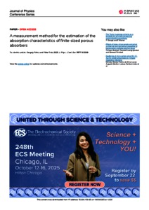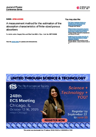 Firtha, Gergely and Fiala, Péter (2023) A measurement method for the estimation of the absorption characteristics of finite-sized porous absorbers. Journal of Physics: Conference Series, 2677. pp. 1-13. ISSN 1742-6588
