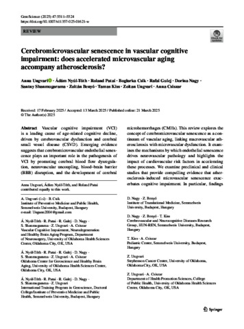 Ungvári, Anna and Nyúl-Tóth, Ádám and Patai, Roland and Csík, Boglárka and Gulej, Rafal and Nagy, Dorina and Shanmugarama, Santny and Benyó, Zoltán and Kiss, Tamás and Ungvári, Zoltán and Csiszár, Anna (2025) Cerebromicrovascular senescence in vascular cognitive impairment: does accelerated microvascular aging accompany atherosclerosis? GeroScience, 47 (4). pp. 5511-5524. ISSN 2509-2723