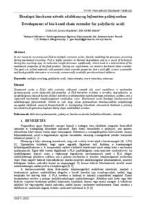 Kutatásunk során a PLA-t több extrúziós ciklusnak vetettük alá, ezzel modellezve a mechanikai újrahasznosítás során lejátszódó folyamatokat. A PLA kiemelten érzékeny a termikus degradációra, az újrafeldolgozási lépések közben fellépő hidrolízis eredményeként molekulatömege jelentősen csökken, ami a végtermék mechanikai tulajdonságainak romlásához vezet. Kísérleteink során bioalapú lánchossznövelő adalékanyagot fejlesztettünk. Célunk az volt, hogy olyan potenciálisan lánchosszabbító tulajdonságú anyagokat találjunk, amelyek fenntarthatóbb és biológiailag lebontható alternatívát kínálnak a jelenleg kereskedelmi forgalomban kapható kőolaj alapú adalékokkal szemben. | In our research, we processed PLA in multiple extrusion cycles, thereby modeling the processes occurring during mechanical recycling. PLA is highly sensitive to thermal degradation and as a result of hydrolysis during the recycling steps, its molecular weight decreases significantly, which leads to a deterioration of the mechanical properties of the final product. During our experiments, we tested a bio-based chain extender. Our goal was to find materials with potential chain extender properties that would offer a more sustainable and biodegradable alternative to currently commercially available petroleum-based additives.