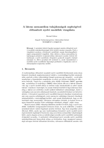 Berend, Gábor (2025) A látens szemantikus tulajdonságok segítségével előtanított nyelvi modellek vizsgálata. In: XXI. Magyar Számítógépes Nyelvészeti Konferencia.