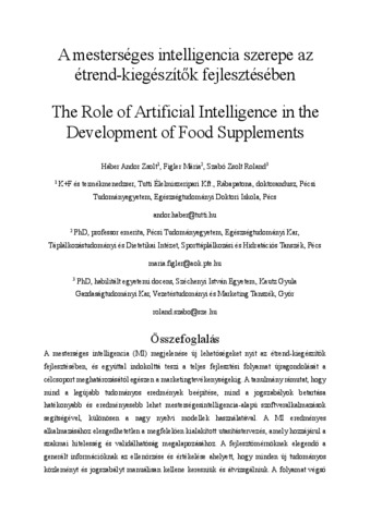 Háber, Andor Zsolt and Figler, Mária and Szabó, Zsolt Roland (2025) A mesterséges intelligencia szerepe az étrend-kiegészítők fejlesztésében. MAGYAR TUDOMÁNY. ISSN 0025-0325 (In Press)