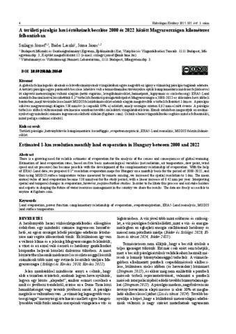 Szilágyi, József and Báder, László and Józsa, János (2025) A területi párolgás havi értékeinek becslése 2000 és 2022 között Magyarországon kilométeres felbontásban. HIDROLÓGIAI KÖZLÖNY, 105 (3). pp. 4-12. ISSN 0018-1323