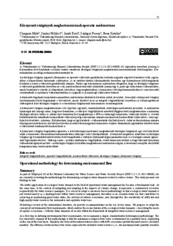 Chappon, Máté and Janák, Emil and Szilágyi, Ferenc and Szalay, Mikós and Bene, Katalin (2025) Környezeti vízigények meghatározásának operatív módszertana. HIDROLÓGIAI KÖZLÖNY, 105 (3). pp. 13-31. ISSN 0018-1323