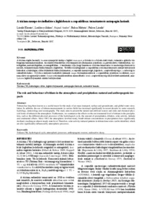 László, Elemér and Leelőssy, Ádám and Hajnal, Andor and Baksa, Mátyás and Palcsu, László (2024) A trícium szerepe és viselkedése a légkörben és a csapadékban: természetes és antropogén hatások. HIDROLÓGIAI KÖZLÖNY, 104 (4). pp. 31-42. ISSN 0018-1323