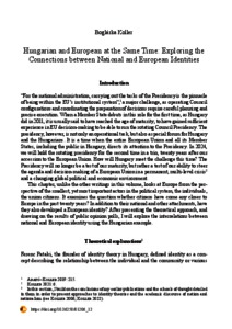 Koller, Boglárka (2024) Hungarian and European at the Same Time: Exploring the Connections between National and European Identities. In: The 2024 Hungarian EU Presidency. Ludovika Egyetemi Kiadó, Budapest, pp. 127-137. ISBN 9789636530624; 9789636530617; 9789636530631