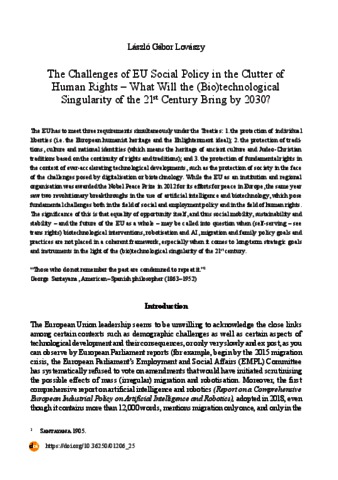 Lovászy, László Gábor (2024) The Challenges of EU Social Policy in the Clutter of Human Rights : What Will the (Bio)technological Singularity of the 21st Century Bring by 2030? In: The 2024 Hungarian EU Presidency. Ludovika Egyetemi Kiadó, Budapest, pp. 379-404. ISBN 9789636530624; 9789636530617; 9789636530631
