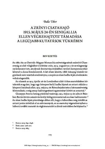 Balla, Tibor (2025) A Zrínyi csatahajó 1915. május 24-én Senigallia ellen végrehajtott támadása a legújabb kutatások tükrében. In: A Syrena és a csatahajó. Ludovika Egyetemi Kiadó, Budapest, pp. 103-123. ISBN 9789636531805