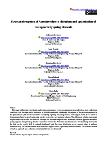 Jovanovic, Aleksandar and Jeremic, Lazar and Djordjevic, Branislav and Sedmak, Simon and Radu, Dorin (2025) Structural response of Autoclave due to vibrations and optimisation of its supports by spring elements. COGNITIVE SUSTAINABILITY, 4 (1). ISSN 2939-5240
