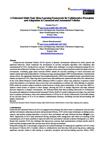 Priya J, Chandra and Balasubramanian, Dhinesh (2025) A Federated Multi-Task Meta-Learning Framework for Collaborative Perception and Adaptation in Connected and Automated Vehicles. COGNITIVE SUSTAINABILITY, 4 (1). ISSN 2939-5240