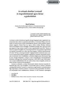 Az erőszak az emberi történelemmel egyidős jelenség. Rengeteg formáját, megjelenését, típusát ismerjük, látjuk, halljuk és tapasztaljuk jelenünkben is. E tanulmány főképp a lenini értelemben vett kommunizmus elméleti erőszakfogalmára fókuszál, néhány gyakorlati megvalósításával kiegészítve. | The study mainly discusses the forms of violence that appear in Lenin’s works. How does Lenin explain state violence, violence used during the revolution, and the new organization of violence set up by the new state? In addition, the works of military strategists Tukhachevsky and Trandafillov are also discussed, as they align with Lenin’s theory. I think there’s no problem if the theory remains just a theory, but the study also briefly outlines how these theories were implemented in practice.