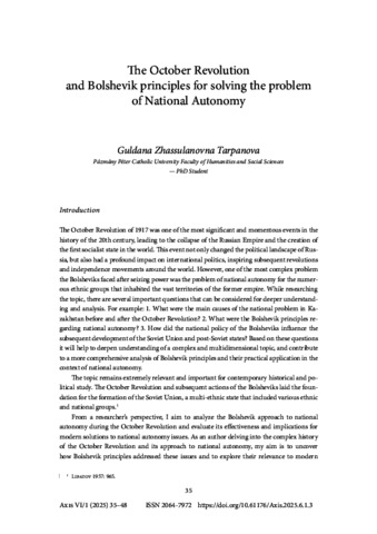 Tarpanova, Guldana (2025) The October Revolution and Bolshevik principles for solving the problem of National Autonomy. AXIS, 6 (1). pp. 35-48. ISSN 2064-7972