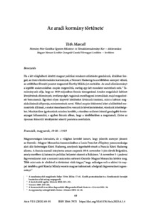 Ha a két világháború közötti magyar politikai rendszer születésére gondolunk, általában Szeged, az itteni ellenforradalmi kormányok, a Nemzeti Hadsereg és az előbbiben szerepet vállaló, az utóbbiban fővezéri posztot megszerző Horthy Miklós jut eszünkbe. Az aradi ellenkormányt a legtöbb szakmunkában csupán megemlítik, esetleg egy-két mondatot szentelnek neki. Tanulmányunk célja, hogy az 1919 májusában francia támogatással Aradon megalakult kabinet létrejöttének előzményeit, tevékenységét, tagjainak mezőhegyesi internálását, majd megszűnését bemutassuk. | On 6 May 1919 the counter-revolutionary government was established with French support in Arad. The prime minister of the cabinet was Count Gyula Károlyi, the ministers were politicians and public figures from Arad and Temesvár. They repealed the laws of the Hungarian Soviet Republic and established the Arad County Gendarmerie as a counter-revolutionary armed force. The government functioned in Arad for a few days because the ministers decided to move to Szeged. However, the two trains did not arrive in the city on the banks of the Tisza, the Romanians interned Gyula Károlyi and most of the ministers on 9 May in Mezőhegyes. The interned persons were released on 22 May 1919 and returned to Arad. At the end of May the ministers resigned and on 31 May 1919 the new counter-revolutionary government was established in Szeged. The sources of my study are the documents of the Arad government, the memoirs published in Hungary and Romania, and the press of the period between the two world wars.