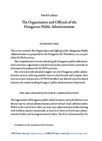 Ludányi, Dávid (2025) The Organisation and Officials of the Hungarian Public Administration. In: Generations in Public Administration 2024: Research Report Collection. Ludovika Egyetemi Kiadó, Budapest, pp. 15-42. ISBN 9789636532093