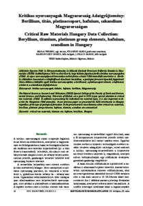 | Uncontrolled Keywords: | ritikus nyersanyagok, titánérc, hafnium, berillium, Magyarország, critical raw materials, titanium ore, hafnium, beryllium, Hungary |
