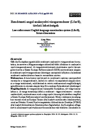 Láng, Nóra (2025) Rendészeti angol szaknyelvi vizsgarendszer (LforS), távlati lehetőségek = Law enforcement English language examination system (LforS), future dimensions. BELÜGYI SZEMLE / ACADEMIC JOURNAL OF INTERNAL AFFAIRS: A BELÜGYMINISZTÉRIUM SZAKMAI TUDOMÁNYOS FOLYÓIRATA (2010-), 73 (2). pp. 289-301. ISSN 2062-9494