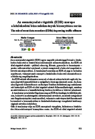 Herke, Csongor and Szécsi, Tibor László (2025) Az eseményadat-rögzítők (EDR) szerepe a közlekedési bűncselekmények bizonyítása során = The role of event data recorders (EDRs) in proving traffic offences. BELÜGYI SZEMLE / ACADEMIC JOURNAL OF INTERNAL AFFAIRS: A BELÜGYMINISZTÉRIUM SZAKMAI TUDOMÁNYOS FOLYÓIRATA (2010-), 73 (4). pp. 811-831. ISSN 2062-9494