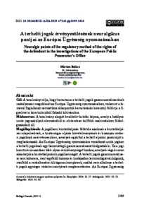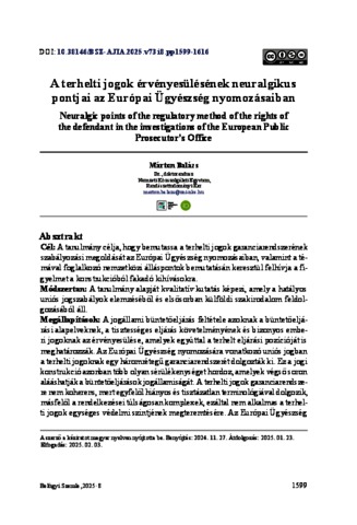 Cél: A tanulmány célja, hogy bemutassa a terhelti jogok garanciarendszerének szabályozási megoldását az Európai Ügyészség nyomozásaiban, valamint a témával foglalkozó nemzetközi álláspontok bemutatásán keresztül felhívja a figyelmet a konstrukcióból fakadó kihívásokra.Módszertan: A tanulmány alapját kvalitatív kutatás képezi, amely a hatályos uniós jogszabályok elemzéséből és elsősorban külföldi szakirodalom feldolgozásából áll.Megállapítások: A jogállami büntetőeljárás feltétele azoknak a büntetőeljárási alapelveknek, a tisztességes eljárás követelményének és bizonyos emberi jogoknak az érvényesülése, amelyek egyúttal a terhelt eljárási pozícióját is meghatározzák. Az Európai Ügyészség nyomozására vonatkozó uniós jogban a terhelti jogoknak egy háromrétegű garanciarendszerét dolgozták ki. Ez a jogi konstrukció azonban több olyan sérülékenységet hordoz, amelyek végső soron alááshatják a büntetőeljárások jogállamiságát. A terhelti jogok garanciarendszere nem koherens, mert egyfelől hiányos és tisztázatlan terminológiával dolgozik, másfelől a rendelkezései túlságosan komplexek, ezáltal nem alkalmas a terhelti jogok egységes védelmi szintjének megteremtésére. Az Európai Ügyészség határon átnyúló bűncselekmények esetén folytatott nyomozásaiban a terhelti jogok szabályozási módjára tekintettel sérülhet a jogbiztonság elve.Érték: A tanulmány legfontosabb célja, hogy az Európai Ügyészségről való átpolitizált diskurzust segítsen visszaterelni a szakmai vita szintjére, és a következtetései utat nyissanak a témával foglalkozó hazai szakértők számára mélyebb kutatásokhoz. Emellett célja, hogy bemutassa az Európai Ügyészség nyomozásaiban a terhelti jogok szabályozási megoldását, továbbá ennek néhány kritikus területét, amelyek egyúttal az európai büntetőjog fejlődésének kurrens kérdései. | Aim: The aim of this study is to present the regulatory framework of the guarantees of the defendant’s rights in the investigations of the European Public Prosecutor’s Office (EPPO), and highlight the challenges emerging from this structure by presenting international perspectives on the topic. Methodology: The study is based on qualitative research, consisting of an analysis of current EU legislation and the processing of primarily foreign scientific literature. Findings: The prerequisites for a rule-of-law-based criminal procedure are the implementation of criminal procedural principles, the requirement for a fair trial, and the protection of certain human rights, which simultaneously define the procedural position of the defendant. In EU law, for the investigations of the European Public Prosecutor’s Office, a three-layer guarantee system has been established for the rights of the accused. However, this legal framework carries several vulnerabilities that undermine the rule of law in the investigations. The guarantee system for the defendant’s rights is not coherent, as it both works with incomplete and unclear terminology and contains provisions that are excessively complex, rendering it unsuitable for creating a uniform standard of protection for the defendant’s rights. In investigations conducted by the European Public Prosecutor’s Office concerning cross-border crimes, the principle of legal certainty may be breached. Value: The primary aim of this study is to help redirect the overly politicized discourse on the European Public Prosecutor’s Office back to a professional level, with its conclusions paving the way for deeper research by domestic experts on the subject. Additionally, it presents the regulatory framework of the defendant’s rights in investigations by the European Public Prosecutor’s Office, while also drawing the attention to several critical areas that are current issues in the development of European criminal law.