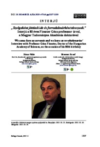 Dános, Valér and Krenner, József (2025) „Szolgaként jöttünk ide és forradalmárként távozunk.” Interjú a 80 éves Finszter Géza professzor úrral, a Magyar Tudományos Akadémia doktorával = ‘We came here as servants and we leave as revolutionaries’ Interview with Professor Géza Finszter, Doctor of the Hungarian Academy of Sciences, on the occasion of his 80th birthday. BELÜGYI SZEMLE / ACADEMIC JOURNAL OF INTERNAL AFFAIRS: A BELÜGYMINISZTÉRIUM SZAKMAI TUDOMÁNYOS FOLYÓIRATA (2010-), 73 (6). pp. 1327-1335. ISSN 2062-9494