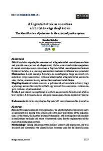 Cél: A büntetés-végrehajtási szervezetnél a fogvatartottak személyazonosításának jelentős szerepe van a befogadásnál, illetve a szervezet mindennapjaiban. A szerző munkája során elsősorban a fogvatartottak személyazonosításának fejlődését kutatja, és a jelenlegi azonosítási módszer kiváltására tesz javaslatot.Módszertan: A cikk szerzője felkutatja és összefoglalja, hogy az elmúlt évtizedekben milyen azonosítási módokat alkalmaztak a fogvatartottak azonosítására, illetve javaslatot tesz új azonosítási módszer kialakítására.Megállapítások: A kutatás során és a publikációban bemutatásra kerül, hogy a jelenlegi azonosítási mód kiváltható egy biometrikus azonosítási módon alapuló módszer alkalmazásával.Érték: A publikáció hiánypótlónak tekinthető az azonosítás fejlődésének áttekintését illetően. A téma aktuális és időszerű napjainkban, fontos kérdéskört tárgyal.