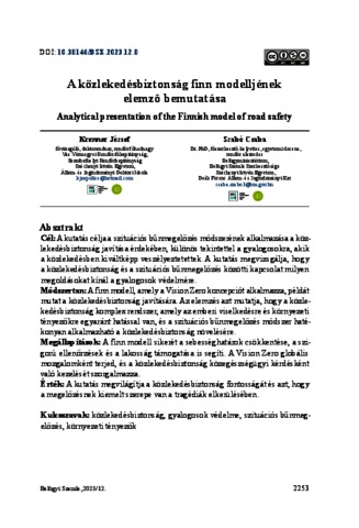 Krenner, József and Szabó, Csaba (2023) A közlekedésbiztonság finn modelljének elemző bemutatása. BELÜGYI SZEMLE / ACADEMIC JOURNAL OF INTERNAL AFFAIRS: A BELÜGYMINISZTÉRIUM SZAKMAI TUDOMÁNYOS FOLYÓIRATA (2010-), 71 (12). pp. 2253-2264. ISSN 2062-9494