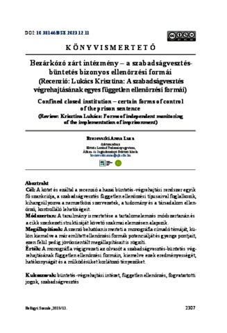 Brezovszki, Anna Luca (2023) Bezárkózó zárt intézmény – a szabadságvesztésbüntetés bizonyos ellenőrzési formái. BELÜGYI SZEMLE / ACADEMIC JOURNAL OF INTERNAL AFFAIRS: A BELÜGYMINISZTÉRIUM SZAKMAI TUDOMÁNYOS FOLYÓIRATA (2010-), 71 (12). pp. 2307-2311. ISSN 2062-9494