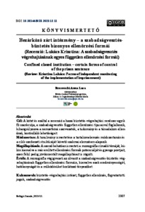 Cél: A kötet és ezáltal a recenzió a hazai büntetés-végrehajtási rendszer egyik fő szankciója, a szabadságvesztés független ellenőrzési típusaival foglalkozik, kihangsúlyozva a nemzetközi szervezetek, a tudomány és a társadalom ellenőrző,kontrolláló lehetőségeit.Módszertan: A tanulmány ismertetése a tartalomelemzés módszertanán és a cikk szerkezeti struktúráját követő szakmai elemzésen alapszik.Megállapítások: A szerző behatóan ismerteti a monográfia címadó témáját, külön kiemelve a már említett ellenőrzési formák potenciálját és gyenge pontjait, ezen felül pedig jövőorientált megállapításait is rögzíti.Érték: A monográfia végigvezeti az olvasót a szabadságvesztés-büntetés végrehajtásának független ellenőrzési formáin, kiemelve ezek eredményességét, hatékonyságát és a működésüket korlátozó tényezőket.