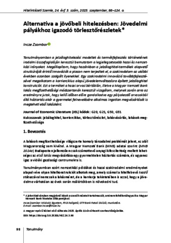 Incze, Zsombor (2025) Alternatíva a jövőbeli hitelezésben: Jövedelmi pályákhoz igazodó törlesztőrészletek. HITELINTÉZETI SZEMLE, 24 (3). pp. 98-124. ISSN 1588-6883