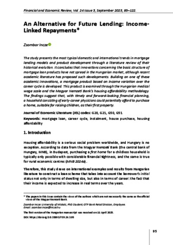 Incze, Zsombor (2025) An Alternative for Future Lending: Income-Linked Repayments. FINANCIAL AND ECONOMIC REVIEW, 24 (3). pp. 95-122. ISSN 2415-9271