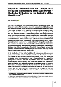 Kolozsi, Pál Péter (2025) Report on the Roundtable Talk ‘Trump’s Tariff Policy and the Reshaping of the World Order – the End of Orthodoxy or the Beginning of the New Normal?’. FINANCIAL AND ECONOMIC REVIEW, 24 (3). pp. 141-146. ISSN 2415-9271