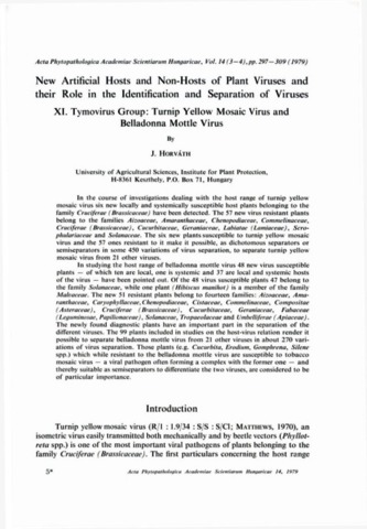 Horváth, József (1979) New Artificial Hosts And Non-hosts of Plant-viruses And Their Role IN The Identification And Separation of Viruses .11. Tymovirus Group - Turnip Yellow Mosaic-virus And Belladonna Mottle Virus. ACTA PHYTOPATHOLOGICA ACADEMIAE SCIENTIARUM HUNGARICAE, 14 (3-4). pp. 297-309. ISSN 0001-6780