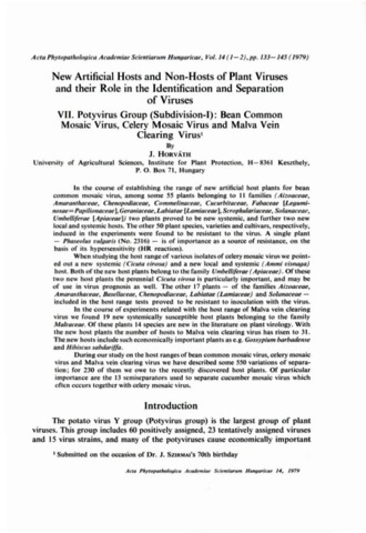 Horváth, József (1979) New Artificial Hosts And Non-hosts of Plant-viruses And Their Role IN The Identification And Separation of Viruses .7. Potyvirus Group (subdivision-i) - Bean Common Mosaic-virus, Celery Mosaic-virus And Malva Vein Clearing Virus. ACTA PHYTOPATHOLOGICA ACADEMIAE SCIENTIARUM HUNGARICAE, 14 (1-2). pp. 133-145. ISSN 0001-6780