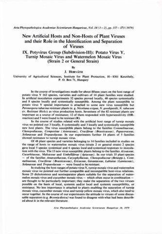 Horváth, József (1979) New Artificial Hosts And Non-hosts of Plant-viruses And Their Role IN The Identification And Separation of Viruses .9. Potyvirus Group (subdivision-iii) - Potato Virus-y, Turnip Mosaic-virus And Watermelon Mosaic-virus (strain-2 OR General Strain). ACTA PHYTOPATHOLOGICA ACADEMIAE SCIENTIARUM HUNGARICAE, 14 (1-2). pp. 157-173. ISSN 0001-6780