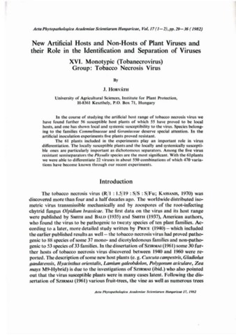 Horváth, József (1982) New Artificial Hosts and Non-hosts of Plant-viruses and their Role in the Identification And Separation of Viruses. 16. Monotypic (Tobanecrovirus) Group: Tobacco Necrosis Virus. ACTA PHYTOPATHOLOGICA ACADEMIAE SCIENTIARUM HUNGARICAE, 17 (1-2). pp. 29-36. ISSN 0001-6780