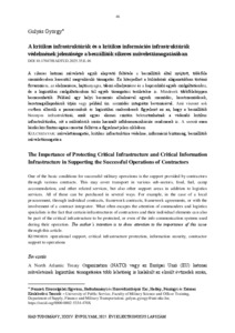 A sikeres katonai műveletek egyik alapvető feltétele a beszállítók által nyújtott, többféle szerződéseken keresztül megvalósuló támogatás. Ez kiterjedhet a különböző alágazatokban történő fuvarozásra, az élelmezésre, hajtóanyagra, tábori elhelyezésre és a kapcsolódó egyéb szolgáltatásokra, de a logisztikai szolgáltatásokon túl egyéb támogatási területekre is. Mindezek többféleképpen beszerezhetők. Például egy helyi beszerzés alkalmával egyedi szerződés, keretszerződések, keretmegállapodások útján vagy például ún. szerződés integrátor bevonásával. Ami viszont sok esetben elkerüli a parancsnokok és logisztikai szakemberek figyelmét az az, hogy a beszállítók bizonyos infrastruktúrái, azok egyes elemei szintén beletartozhatnak a védendő kritikus infrastruktúrába, sőt a működésük során használt infokommunikációs rendszerek is. A szerző ezen kérdéskör fontosságára szeretné felhívni a figyelmet jelen cikkében.